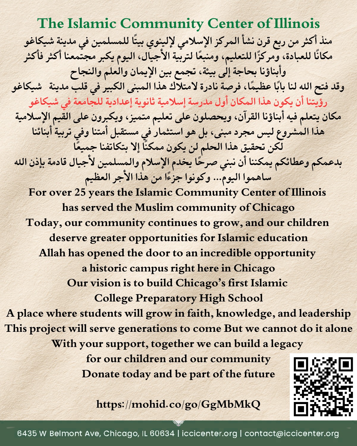 BUILD CHICAGO’S FIRST ISLAMIC COLLEGE PREP HIGH SCHOOL