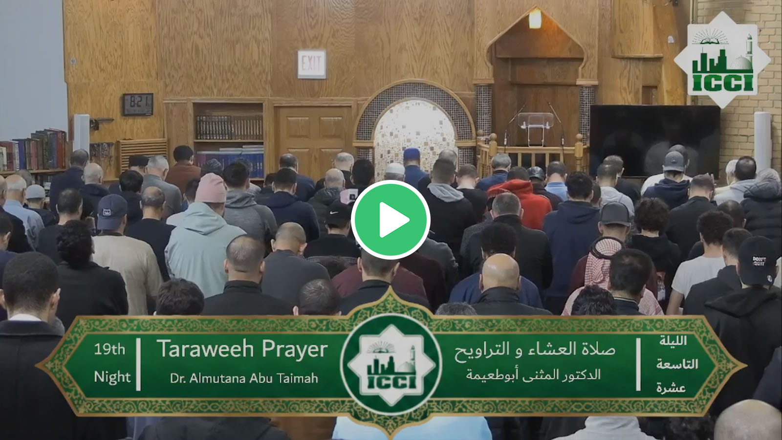 صلاة العشاء و التراويح – ليلة ال 19 من رمضان صلاة العشاء و التراويح – ليلة ال 19 من رمضان تم النشر بواسطة Islamic Community Center of Illinois – ICCI في السبت، ٧ مارس ٢٠٢٦
