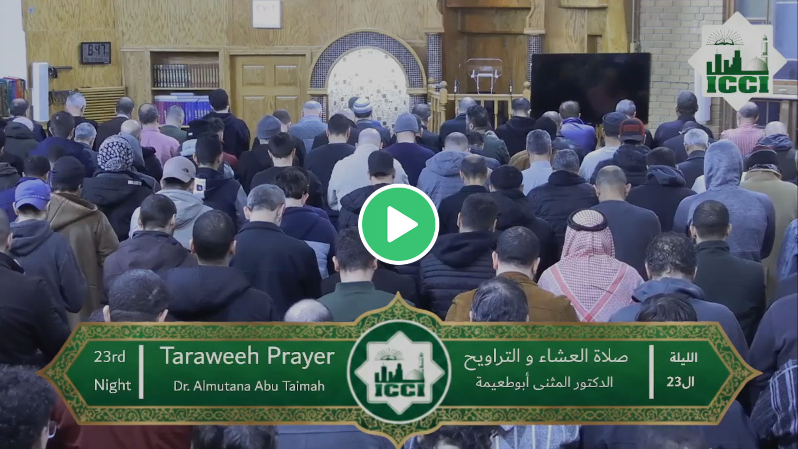 صلاة العشاء و التراويح – ليلة ال 23 من رمضان صلاة العشاء و التراويح – ليلة ال 23 من رمضان تم النشر بواسطة Islamic Community Center of Illinois – ICCI في الأربعاء، ١١ مارس ٢٠٢٦