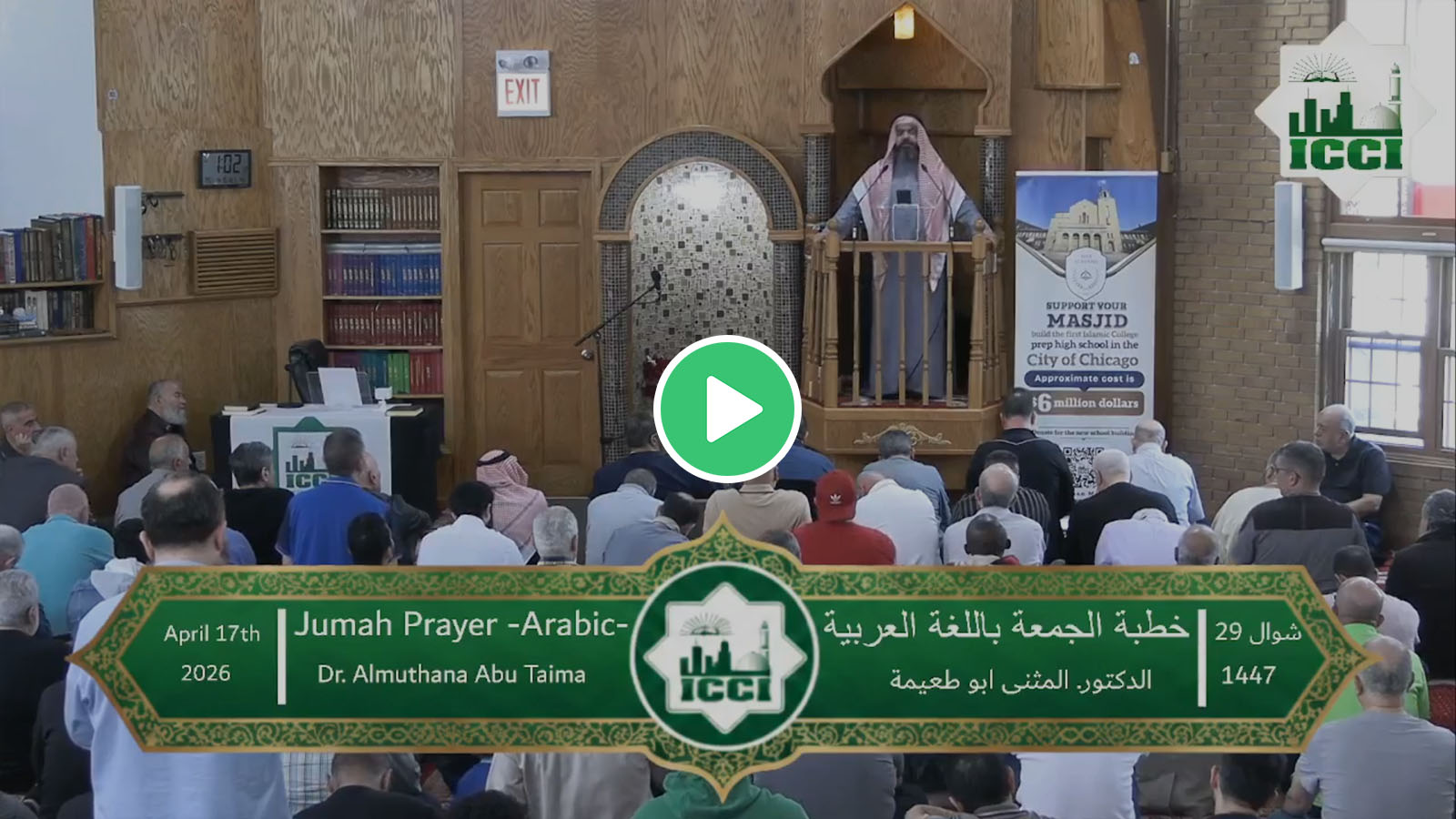 خطبة الجمعة الأولى باللغة العربية خطبة الجمعة الأولى باللغة العربية تم النشر بواسطة Islamic Community Center of Illinois – ICCI في الجمعة، ١٧ أبريل ٢٠٢٦