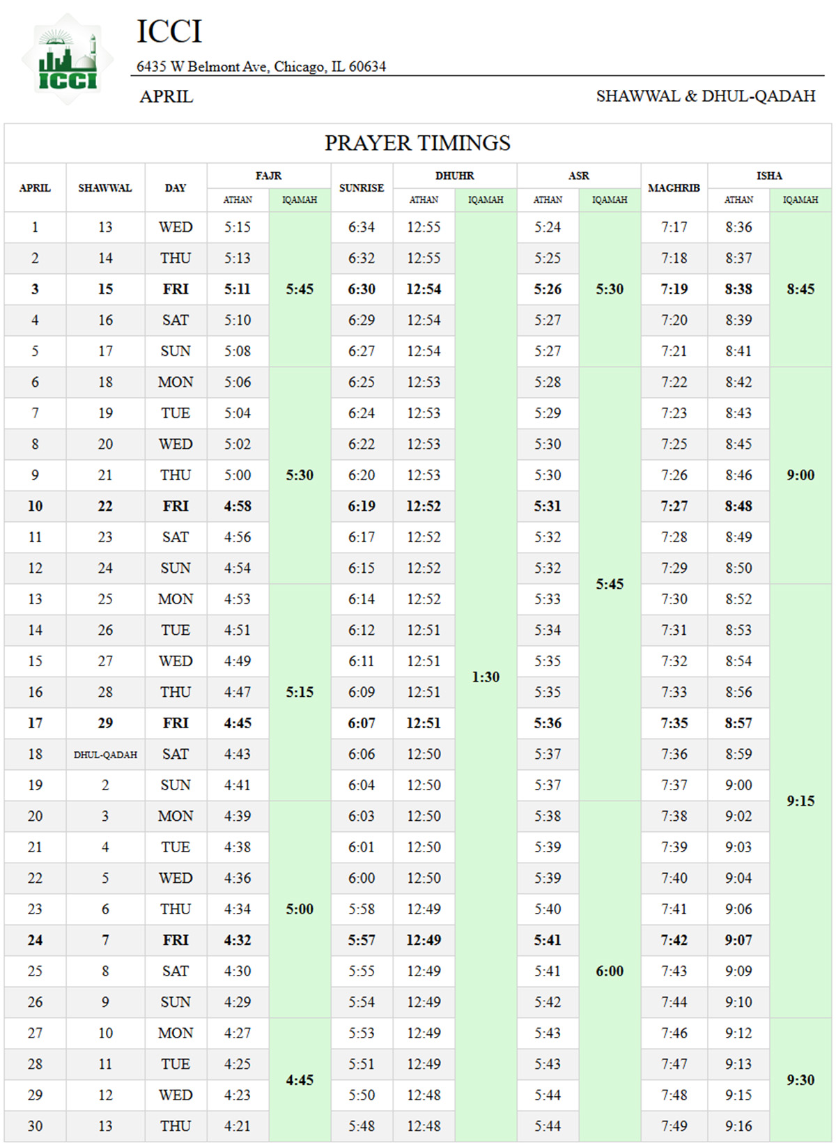 The Islamic Community Center of Illinois, ICCI, is a non-profit organization that was established in 2001. It is located on the Northwest side of Chicago. It includes a Masjid with two prayer halls, a school, a lecture hall, and a youth center.