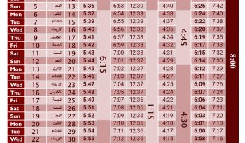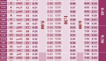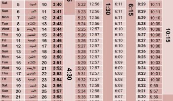 September Prayer Time Table 2025