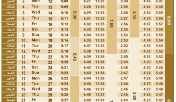 May Prayer Time Table 2025