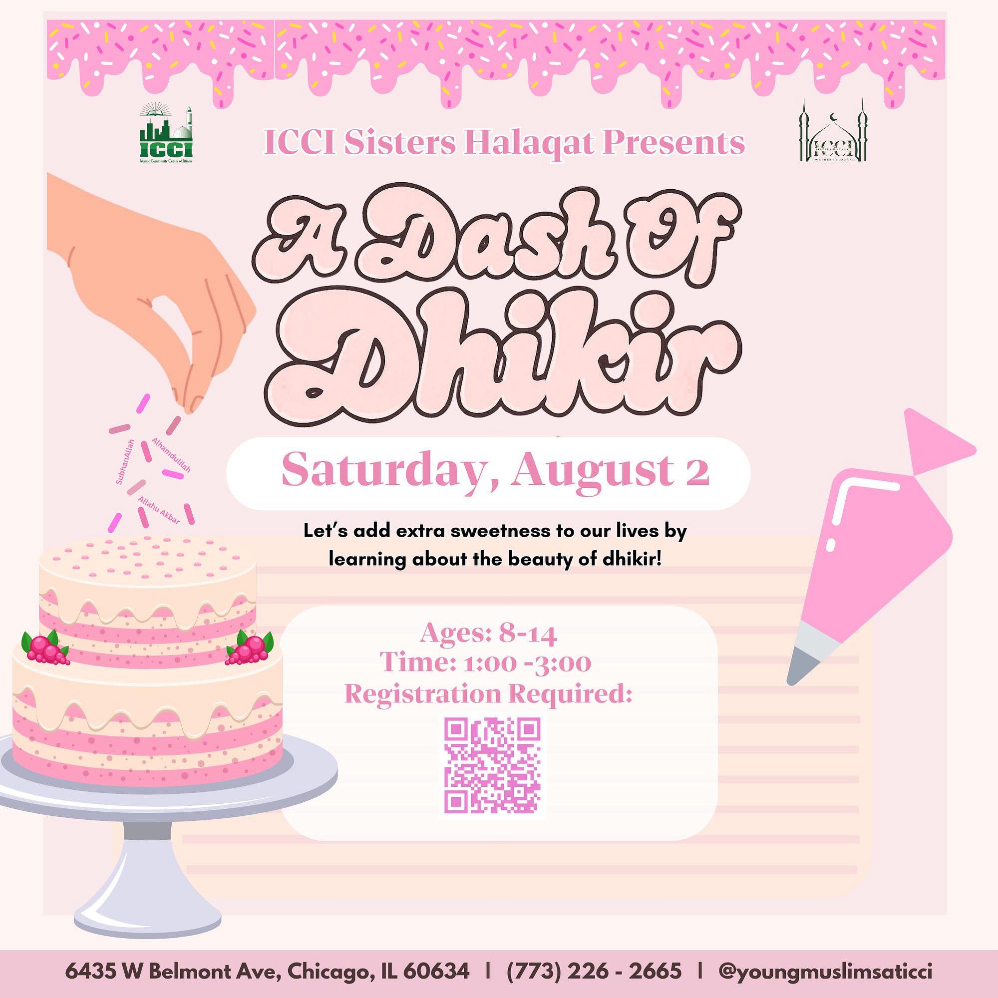 Join us as we learn how “A Dash Of Dhikir” in our lives will make it more sweet not only in this Dunya, but in the Akhirah as well. We will have an exciting activity that day as well!