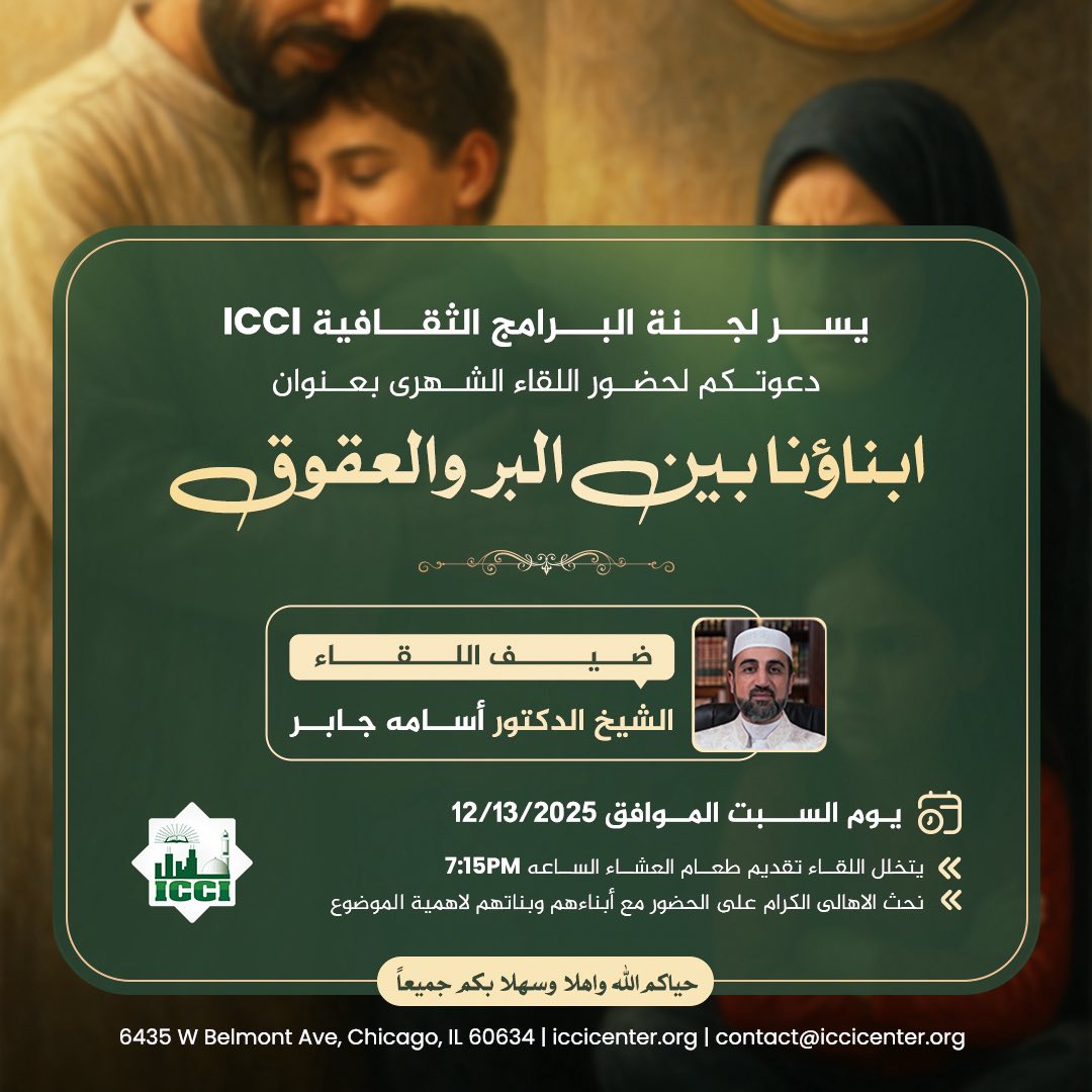 يتخلل اللقاء تقديم طعام العشاء الساعه 7:15pm